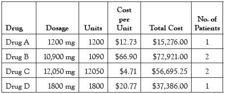 - Total number of patients receiving free drugs: 63; financial value of drugs, $2,034,758.14