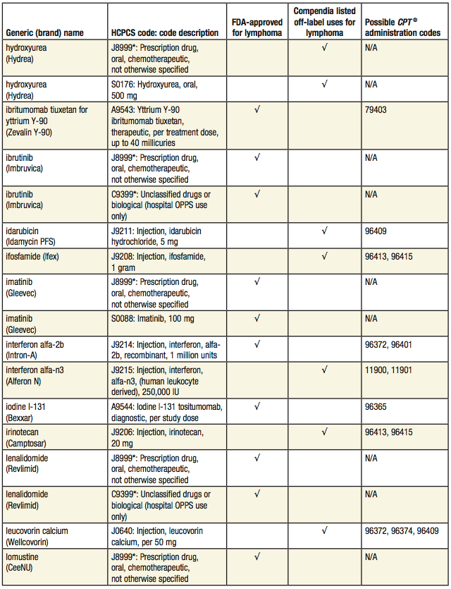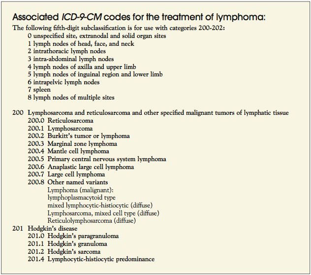 The following sections will assist healthcare professionals and payers by providing appropriate coding and billing information associated with the treatment of lymphoma.