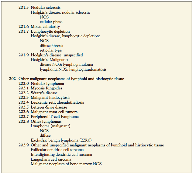 - Associated ICD-9-CM codes used for the classification of lymphoma