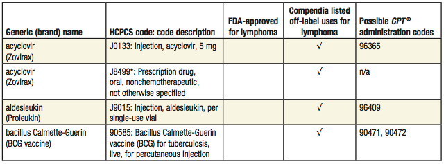 - Drugs that are Compendia-listed for off-label use for lymphoma based on clinical studies that suggest beneficial use in some cases. Please note: If a check mark appears in the FDA column it will NOT appear in the Compendia off-label use column