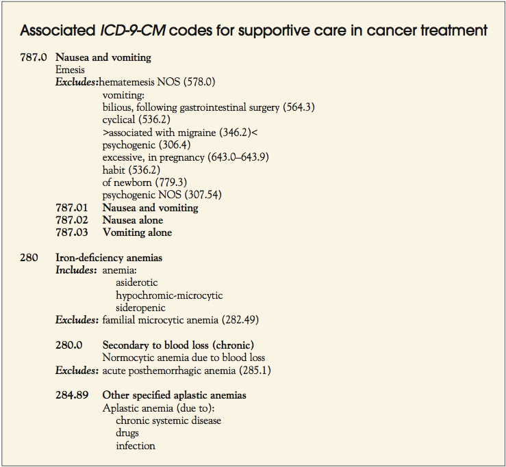 - Associated ICD-9-CM codes used for the classification of supportive care in cancer treatment
