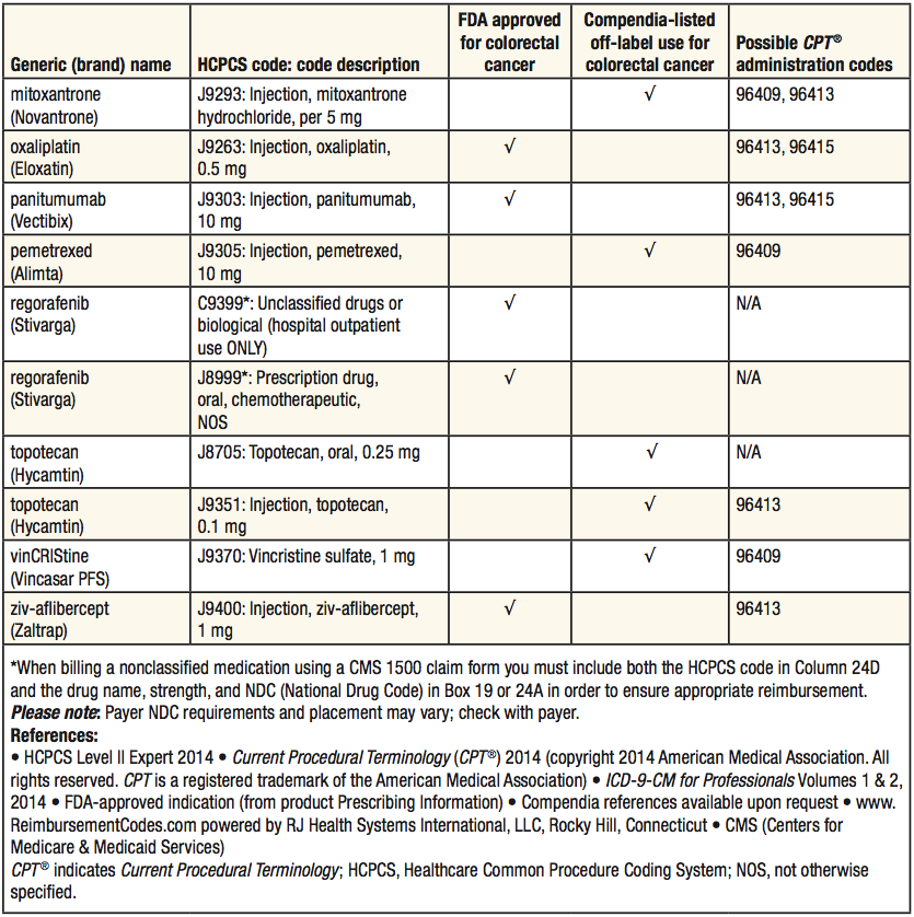 The following sections will assist healthcare professionals and payers by providing appropriate coding and billing information associated with the treatment of colorectal cancer.