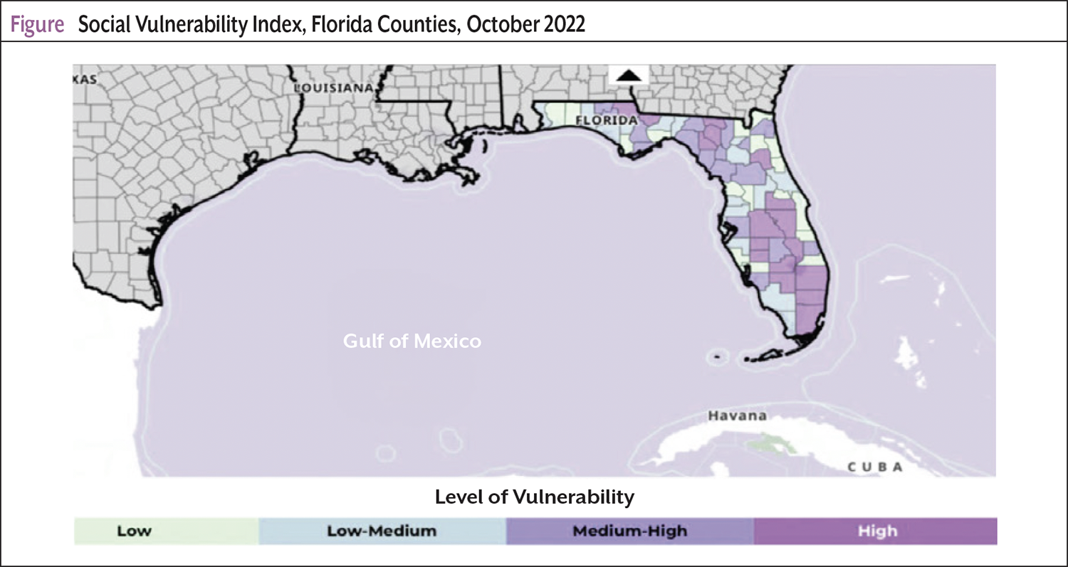 - Centers for Disease Control and Prevention and Agency for Toxic Substances and Disease Registry. Social Vulnerability Index. Updated August 27, 2024. Accessed December 30, 2024. www.atsdr.cdc.gov/community-stress-resource-center/php/resources/social-vulnerability-index.html