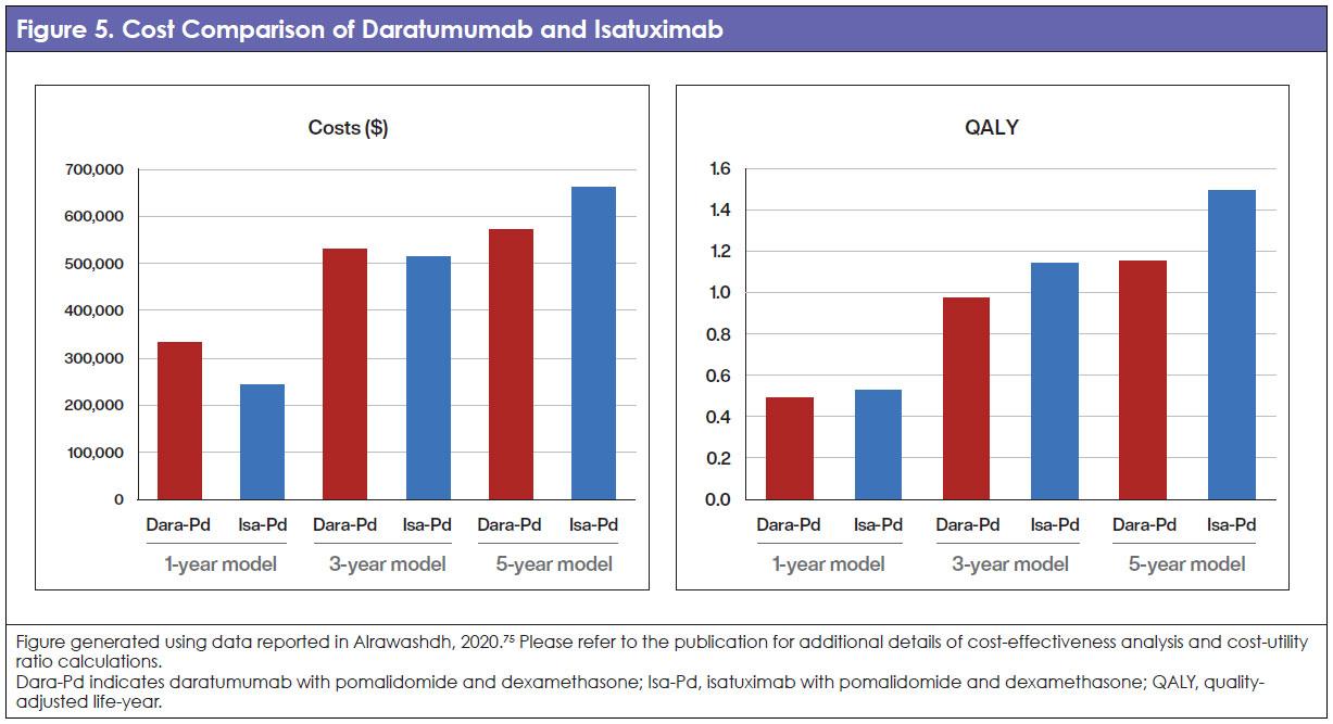 - Alrawashdh N. Economic evaluation of daratumumab and pomalidomide and dexamethasone versus isatuximab and pomalidomide and dexamethasone for patients with relapsed or refractory multiple myeloma. In: ASH; 2020. https://ash.confex.com/ash/2020/webprogram/Paper136348.html. Accessed January 19, 2022.